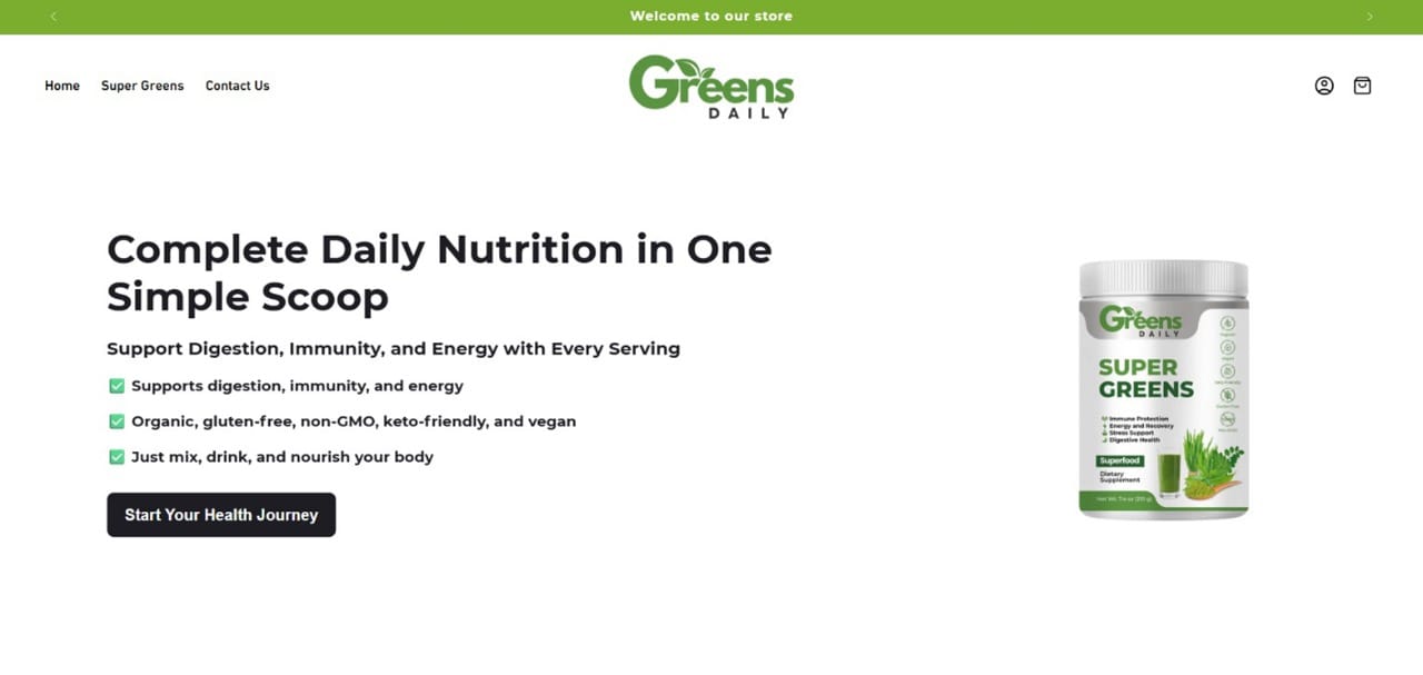 Greens Daily came to us with nothing but an idea, no product, no branding, no supply chain, no customer support, and zero experience in the supplement space. Just a vision to build a high-quality, health-focused greens powder brand.