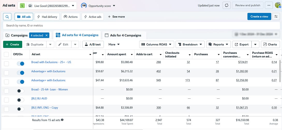 The situation was dire: spending over $44,000 monthly to generate less than $17,000 in revenue. Most agencies would have recommended pausing all advertising immediately, but we saw the underlying potential in their health-focused product line and loyal customer base.